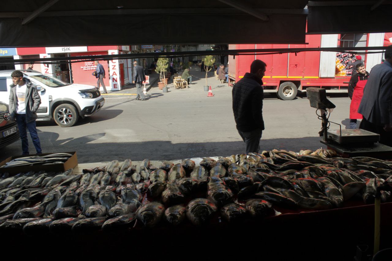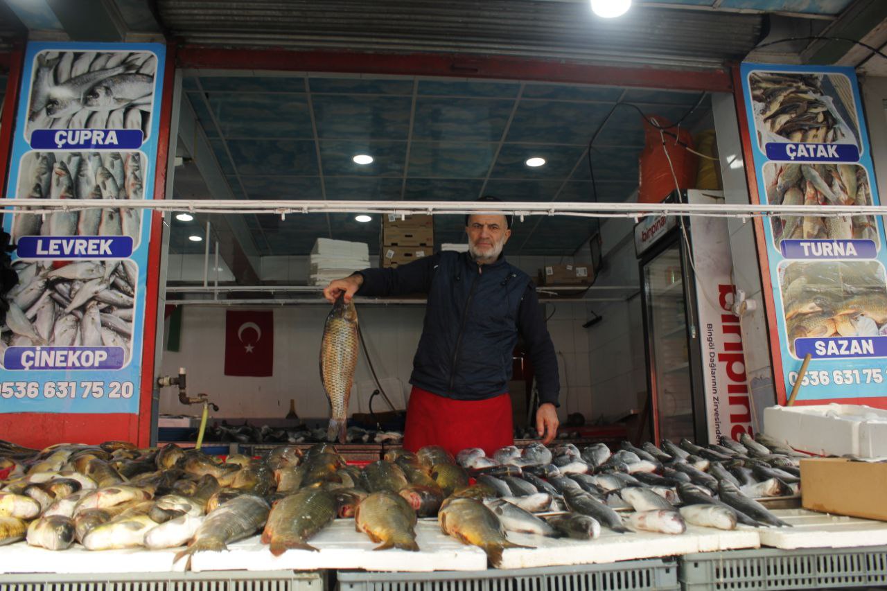 Bingöl’de Balıkçı Nesih olarak olarak bilinen Nesih Demir’in tezgahında birçok balık bulunuyor. Hamsi, istavrit, palamut, çipura, levrek, alabalık, somon ve sazan ilk göze çarpan balıklardan. Mikrofon uzattığımız Balıkçı Nesih, bu dönemde Karadeniz Palamudunun bol çıktığını söyledi.