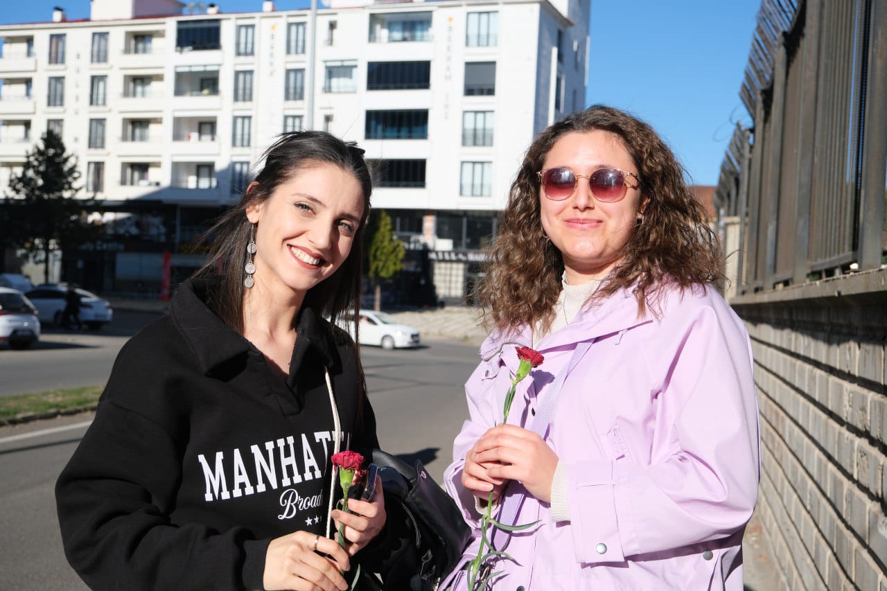 BİNGÖL – Bingöl’de Barikat Çewlig’in kadına yönelik şiddete karşı farkındalık çalışmaları sürüyor. Kadın cinayetlere tepki çekmek isteyen Barikat Çewlig, Üniversite ve Genç caddelerinde kadınlara karanfil dağıttı.