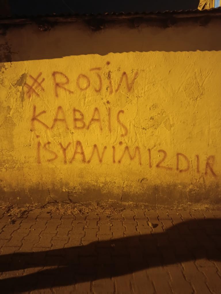 Bingöl’ün farklı mahallelerinde yapılan yazılamalarda, “Rojin Kabaiş İsyanımızdır”, Jin jiyan azadî” ve “Kadın, Yaşam, Özgürlük” yazıldı.