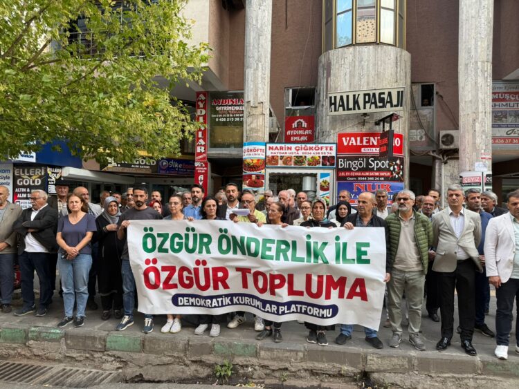 BİNGÖL – Demokratik Kurumlar Platformu, Abdullah Öcalan’ın 9 Ekim 1998 tarihinde Suriye’den çıkarılmasının 27. yıldönümü dolayısıyla Bingöl’de basın açıklaması düzenledi. Etkinlik, DEM Parti Bingöl İl Binası önünde gerçekleştirildi.
