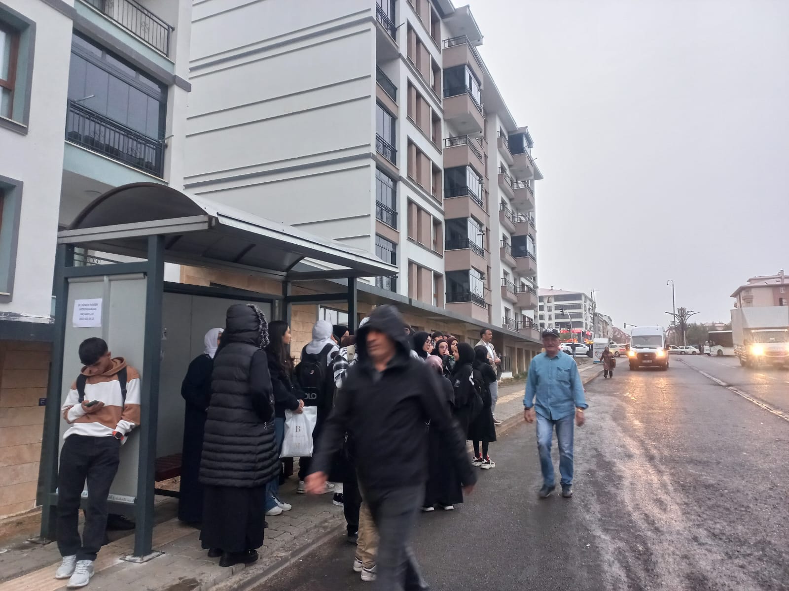 Çarşı merkezde Kültür Mahallesi’ne giden otobüsler seferindeki aksama duraklarda yolcu birikmesine neden oldu. Yağmura rağmen dakikalarca beklemek zorunda kalan yolcular, 40 dakikada bir otobüsün geldiğini söyledi.