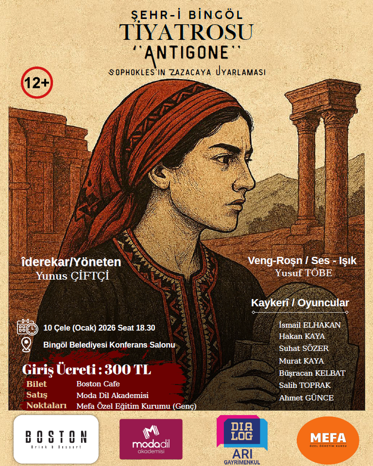 Şimdi ise Sophokles’in ölümsüz tragedyası “Antigone”, Zazaca uyarlamasıyla ilk kez perde açacak.