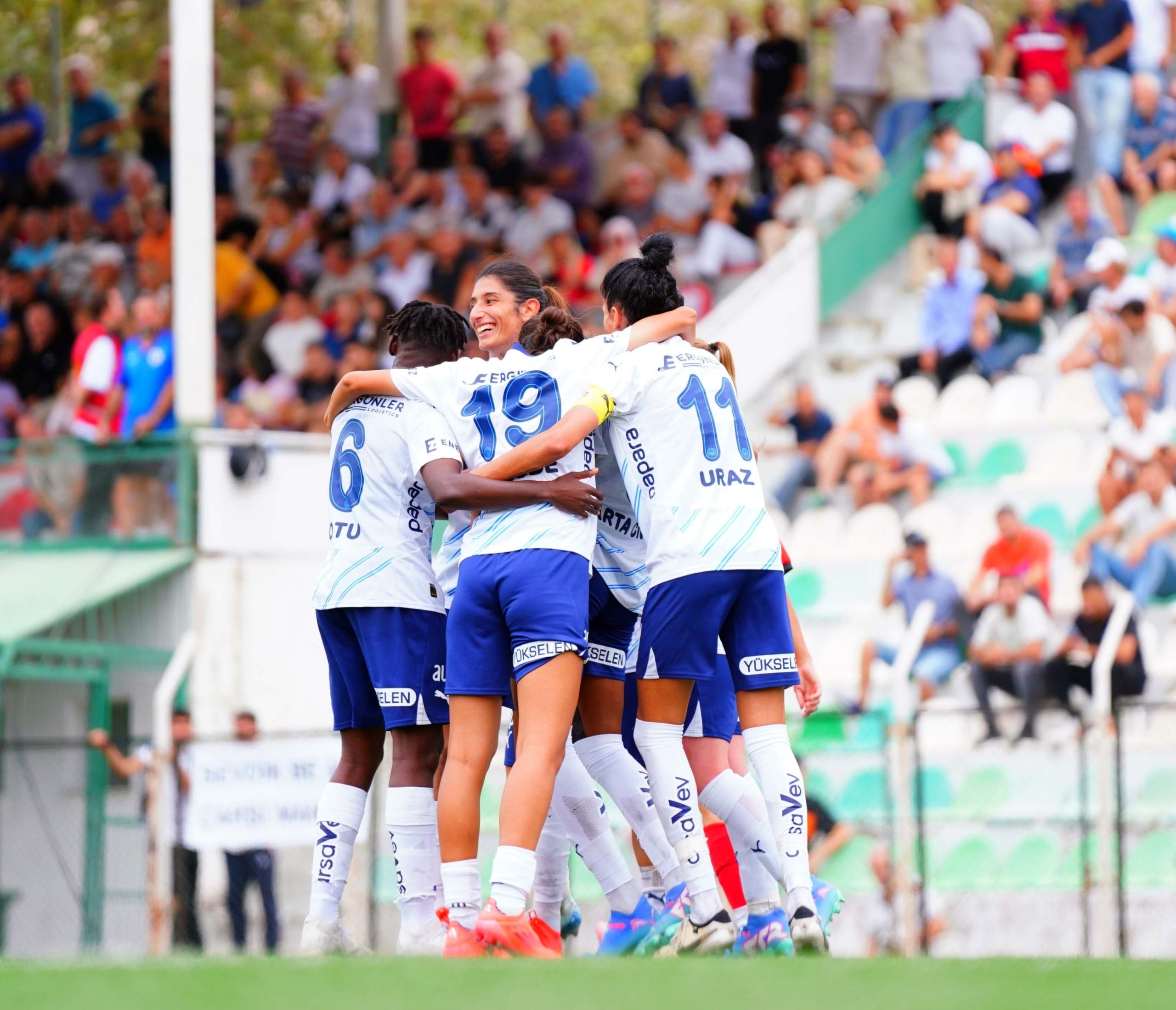 Çewlik.net – Fenerbahçe Petrol Ofisi Kadın Futbol Takımı, Turkcell Kadın Futbol Süper Ligi 5. hafta maçında Bornova Hitab Spor’a konuk oldu. Bornova İlçe Stadyumu’nda oynanan maçı 3-0 kazanan Fenerbahçe, 5’te 5 yaptı ve puanını 15’e yükselterek liderliğini sürdürdü.