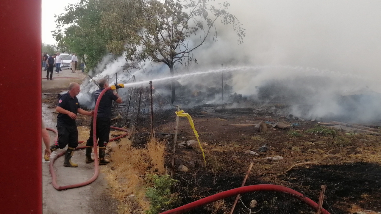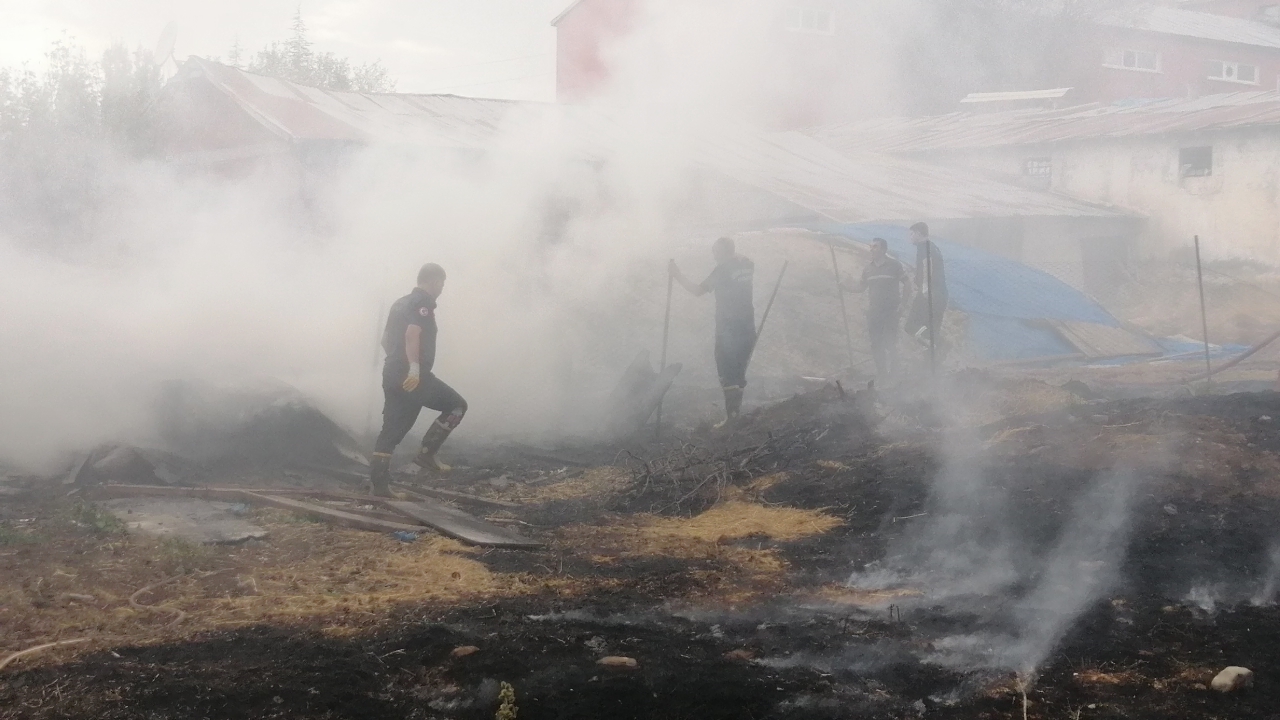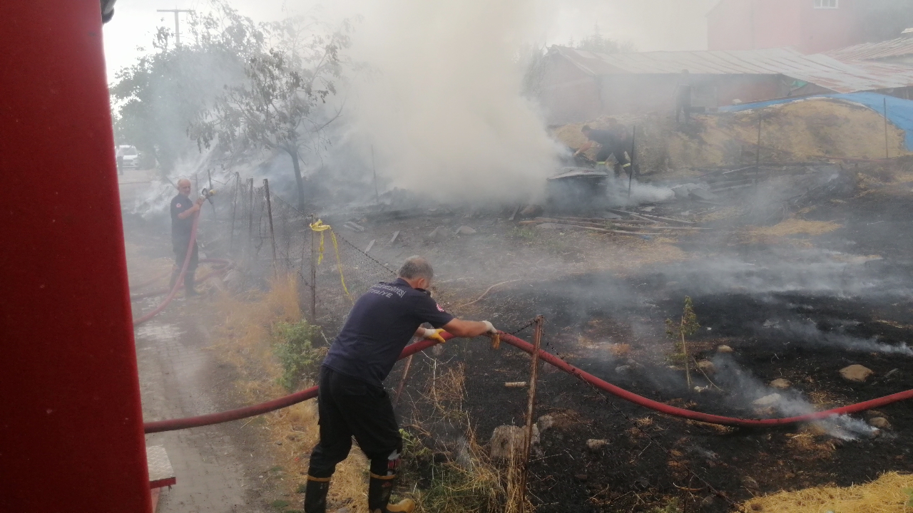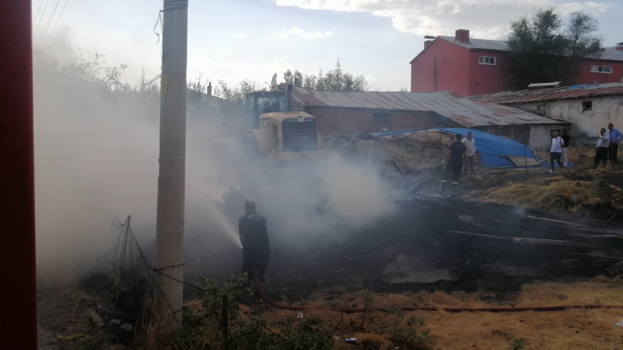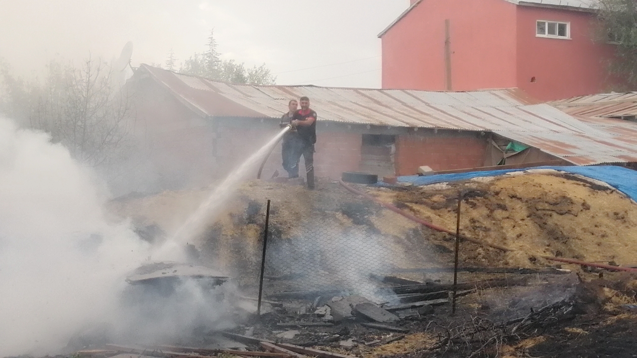 Yangında 800 balya ot, 20 ton saman ve ahırdaki tahtalar tamamen yandı.