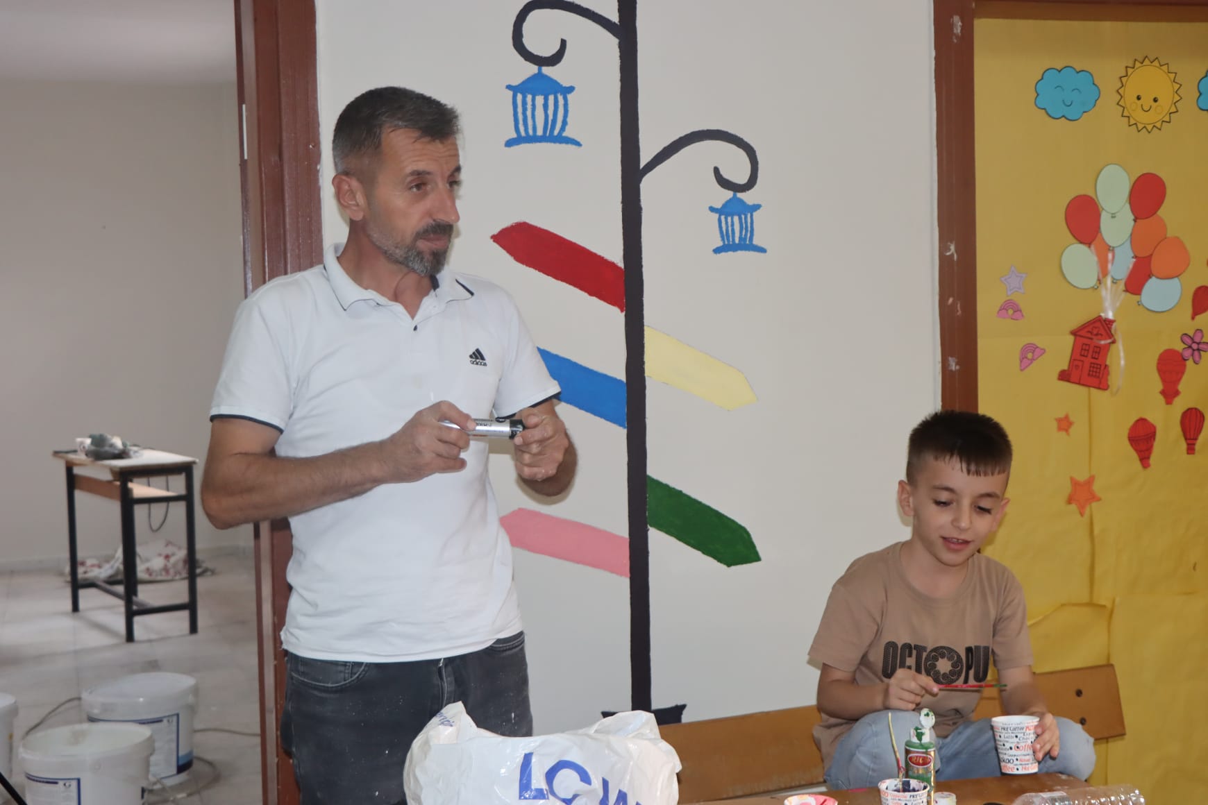 Okulun tüm eksiklerini gözden geçiren gönüllüler, eksikleri tamamlayıp, çocukları da mutlu etti. Okulun içini boyatan üyeler, duvarlara da çeşitli resim çizdiler. Yaklaşık 30 öğrenciye bot, mont, kırtasiye malzemeleri ve çeşitli hediyelerde dağıtan dernek üyeleri, çocuklara unutulmaz bir gün yaşattılar.