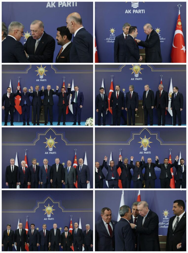 AK Parti Genel Merkezi’nden yapılan açıklamada, “Cumhurbaşkanımızın ve MHP liderimizin katılımıyla düzenlenen toplantıda, yerel yönetimlerdeki ittifakı güçlendirmek amacıyla rozet töreni gerçekleştirildi” denildi. Erdoğan, konuşmasında “Birlik ve beraberlik zamanı; milletimizin iradesi her şeyin üstündedir” diye mesaj verdi.